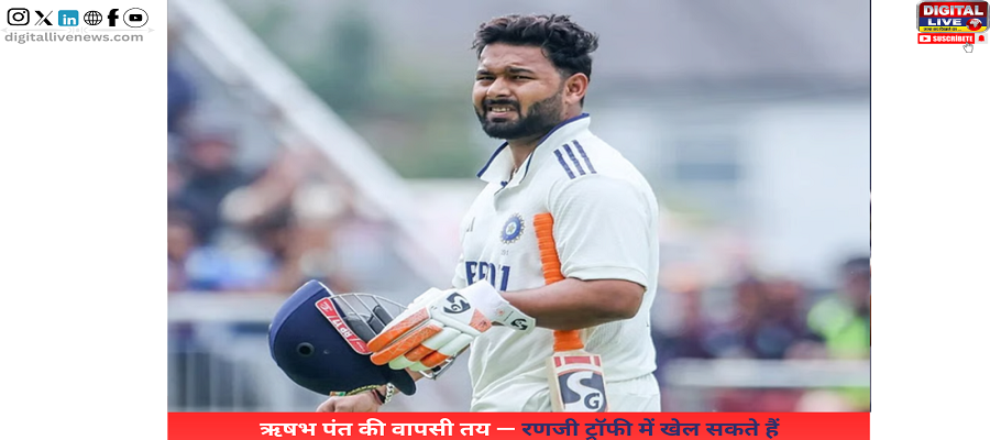 ऋषभ पंत की वापसी तय — रणजी ट्रॉफी में खेल सकते हैं