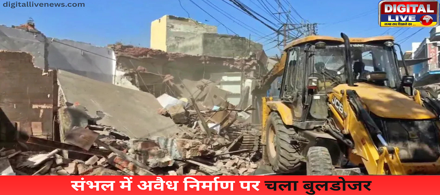 संभल (Digitallivenews):UP: संभल में अवैध निर्माण पर प्रशासन की सख्त कार्रवाई, मस्जिद व मकानों पर चला बुलडोजर