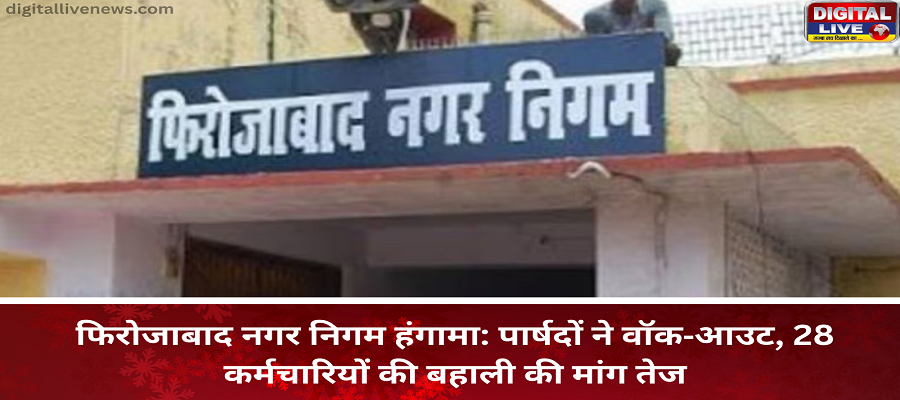फिरोजाबाद नगर निगम हंगामा: पार्षदों ने वॉक‑आउट, 28 कर्मचारियों की बहाली की मांग तेज