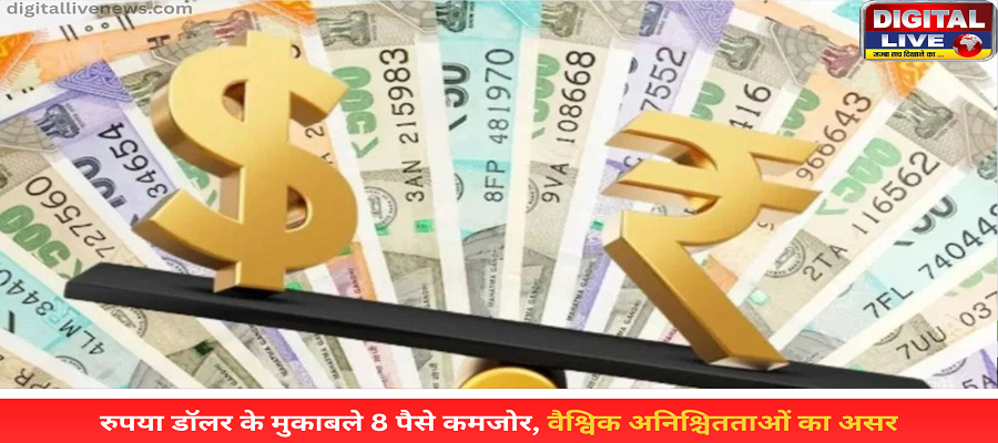रुपया डॉलर के मुकाबले 8 पैसे कमजोर, वैश्विक अनिश्चितताओं का असर