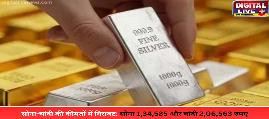 सोना-चांदी की कीमतों में गिरावट: सोना 1,34,585 और चांदी 2,06,563 रुपए